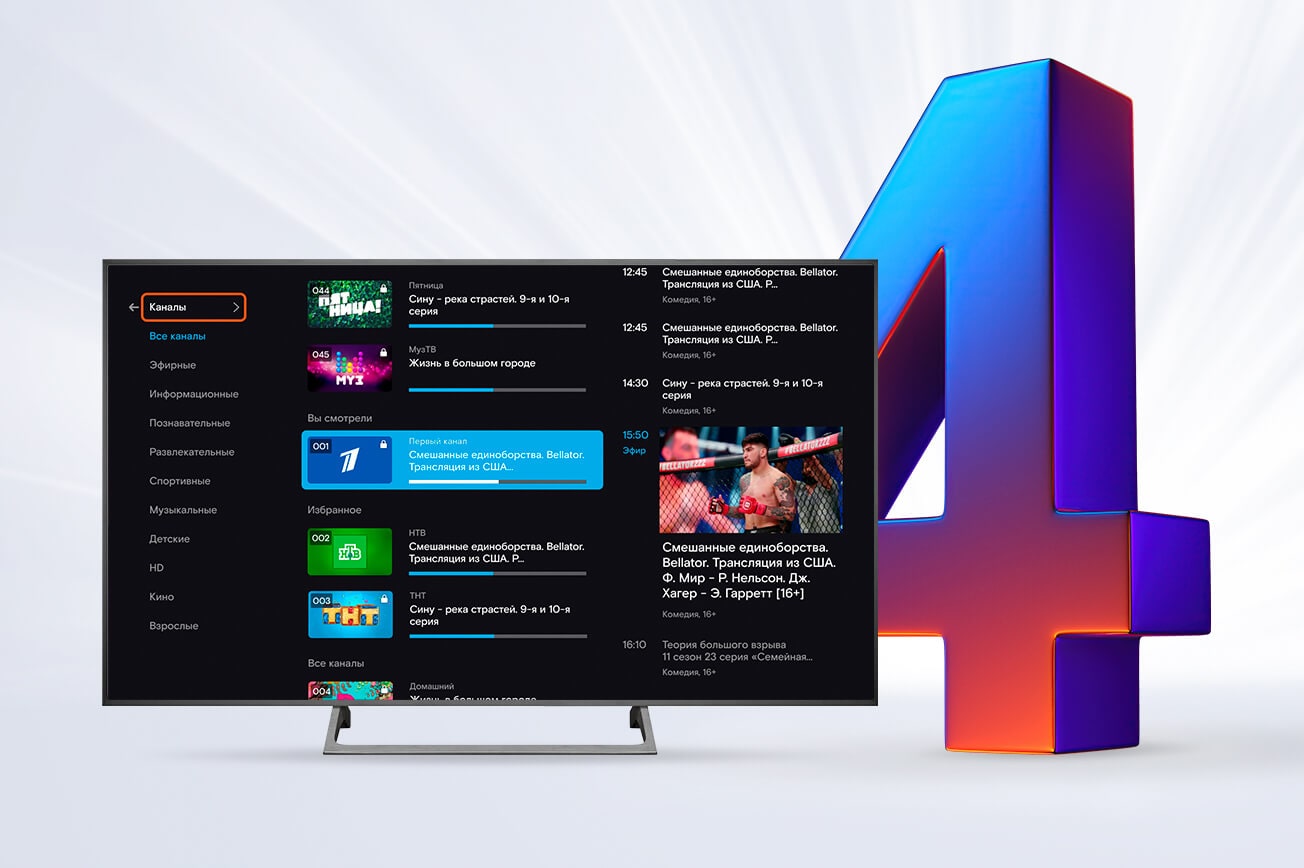 В Великолепную четверку входят 4 вида услуг: качественная мобильная связь, домашняя wi-fi сеть с интернетом без ограничений, многофункциональное интерактивное ТВ и подписка на онлайн-кинотеатр.